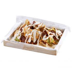 Large Tray of Traditional Tortilla Chips Served with GravyBaby Recipe Spicy Beef Chilli, Melted Cheese Sauce, Sour Cream, Guacamole, Jalapenos